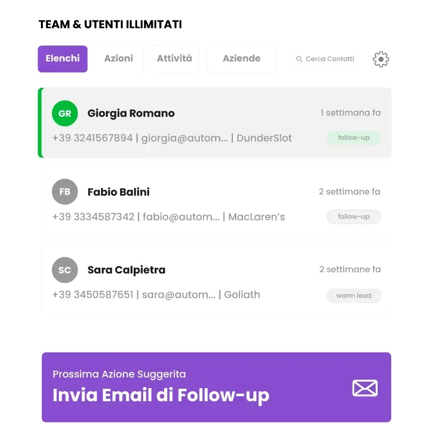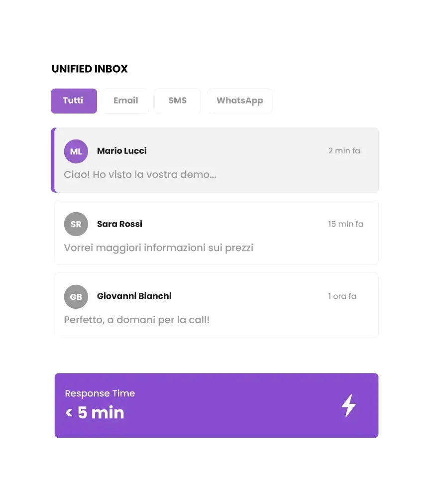 Un contatto non è un numero. È una conversazione. Gestiscile tutte in un unico posto e non perdere mai più una vendita.