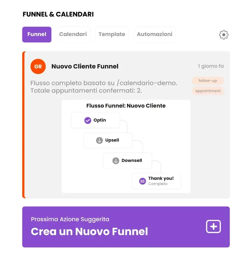 Costruisci il percorso che porta un visitatore curioso a diventare un appuntamento in agenda. Il funnel converte, il calendario si riempie da solo. Zero chiamate per fissare riunioni, zero “uh, mi sono dimenticato del meeting!”.