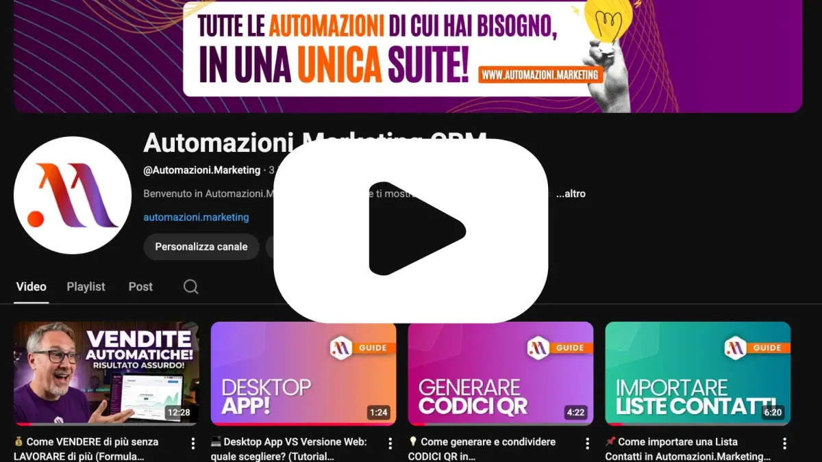 Guide, tutorial e automazioni pronte all'uso. Sul canale YouTube di Automazioni.Marketing trovi tutto quello che serve per capire lo strumento, portare al massimo il suo potenziale e iniziare a guadagnare.